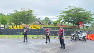 Minggu 9 November 2025 sekira pukul 06.00. Wita terlihat petugas melakukan pengaturan Arus Lalulintas di pertigaan patung kuda Desa Panda Kecamatan Palibelo Kabupaten Bima.