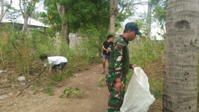 Gotong Royong Babinsa dan Warga Warnai Gili Trawangan Bersih