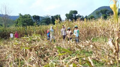 Dalam rangka mendukung Program Ketahanan Pangan Nasional menuju Indonesia Emas 2025, Bhabinkamtibmas Desa Adu, Polsek Hu’u Brigadir Wahyudin melaksanakan kegiatan sambang sekaligus membantu warga binaannya dalam proses panen jagung.