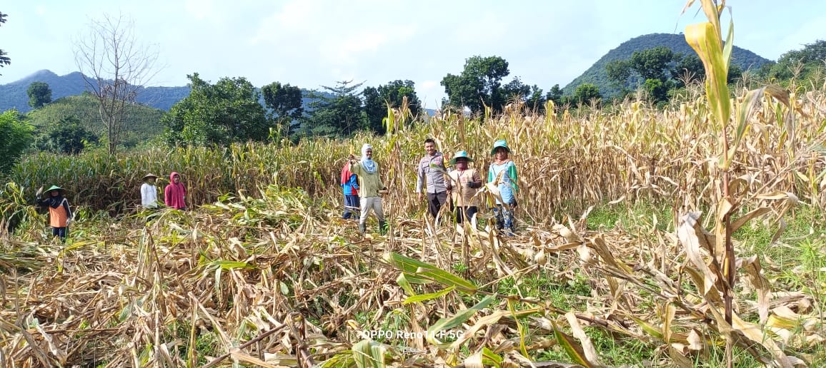 Bhabinkamtibmas Desa Adu Polsek Hu’u Laksanakan Sambang dan Bantu Panen Jagung Guna Dukung Program Ketahanan Pangan Nasional