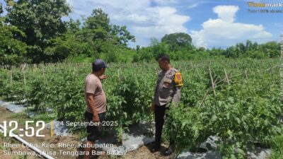 Sumbawa Besar, NTB — Bhabinkamtibmas Desa Rhee Loka Polsek Rhee, melaksanakan kegiatan sambang desa pada Rabu, 24 September 2025. Kegiatan ini bertujuan untuk mendukung program ketahanan pangan nasional dengan memantau lahan pertanian milik warga.